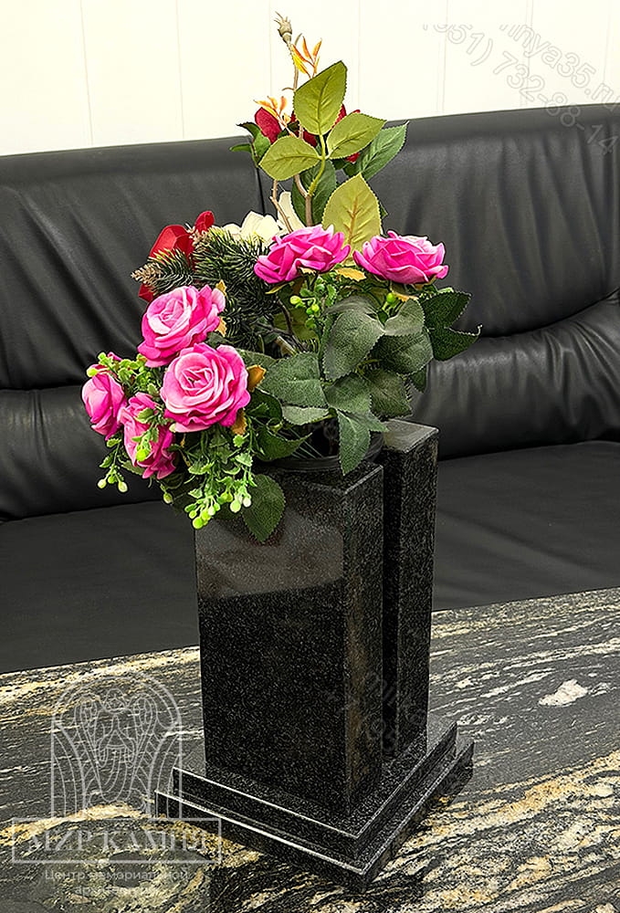 Долговечная гранитная ваза для мемориала — символ вечной памяти. Изготовлена из высокопрочного гранита Габбро Диабаз. Полированная поверхность с глянцевым блеском. Форма: прямоугольная