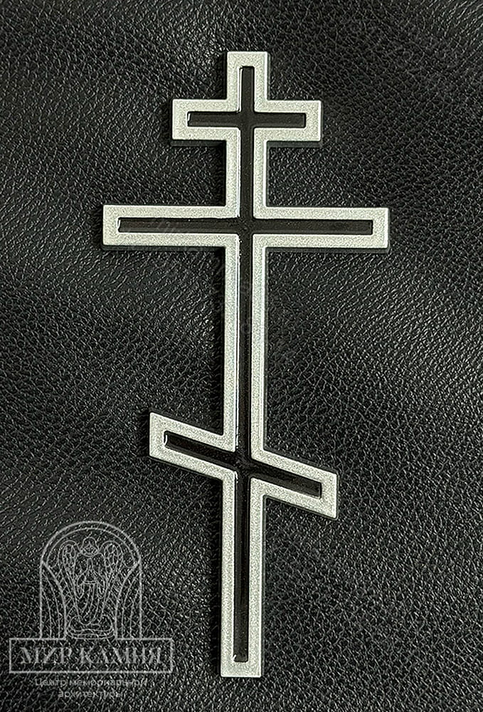 Компактный накладной крест на памятник — доступное решение для оформления могилы. Классическая форма православного восьмиконечного креста с чёткими контурами.