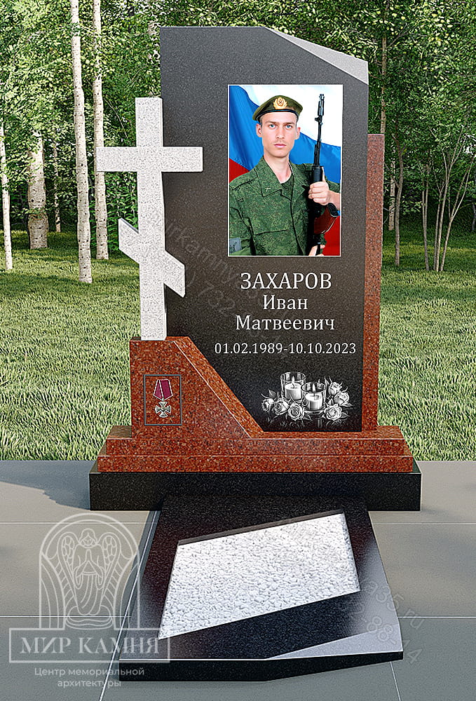 Мы используем сочетание чёрного гранита и красного гранита и светлого гранита. Мемориал воину, погибшему в ходе специальной военной операции. Этот памятник — современный символ скорби и памяти. Он посвящён российским военнослужащим, отдавшим жизнь в ходе СВО.